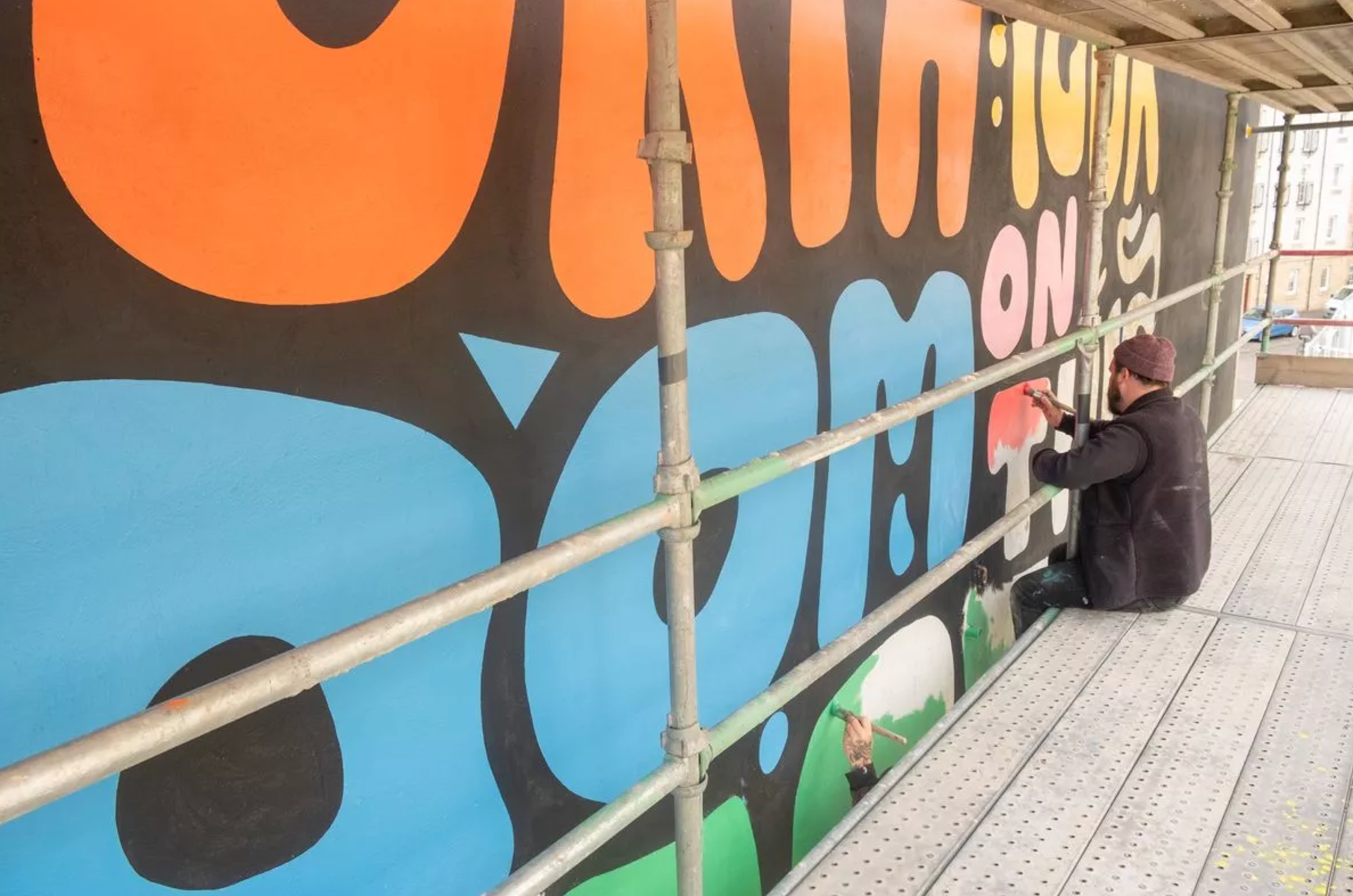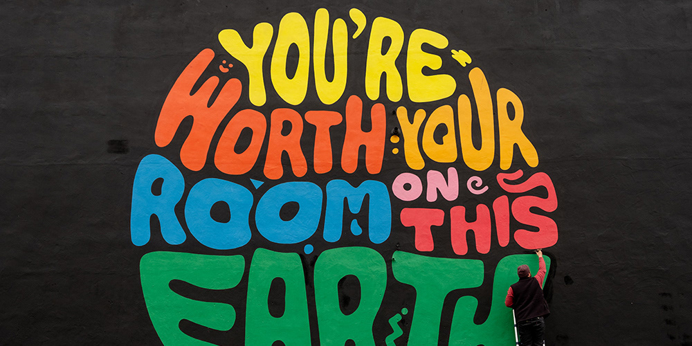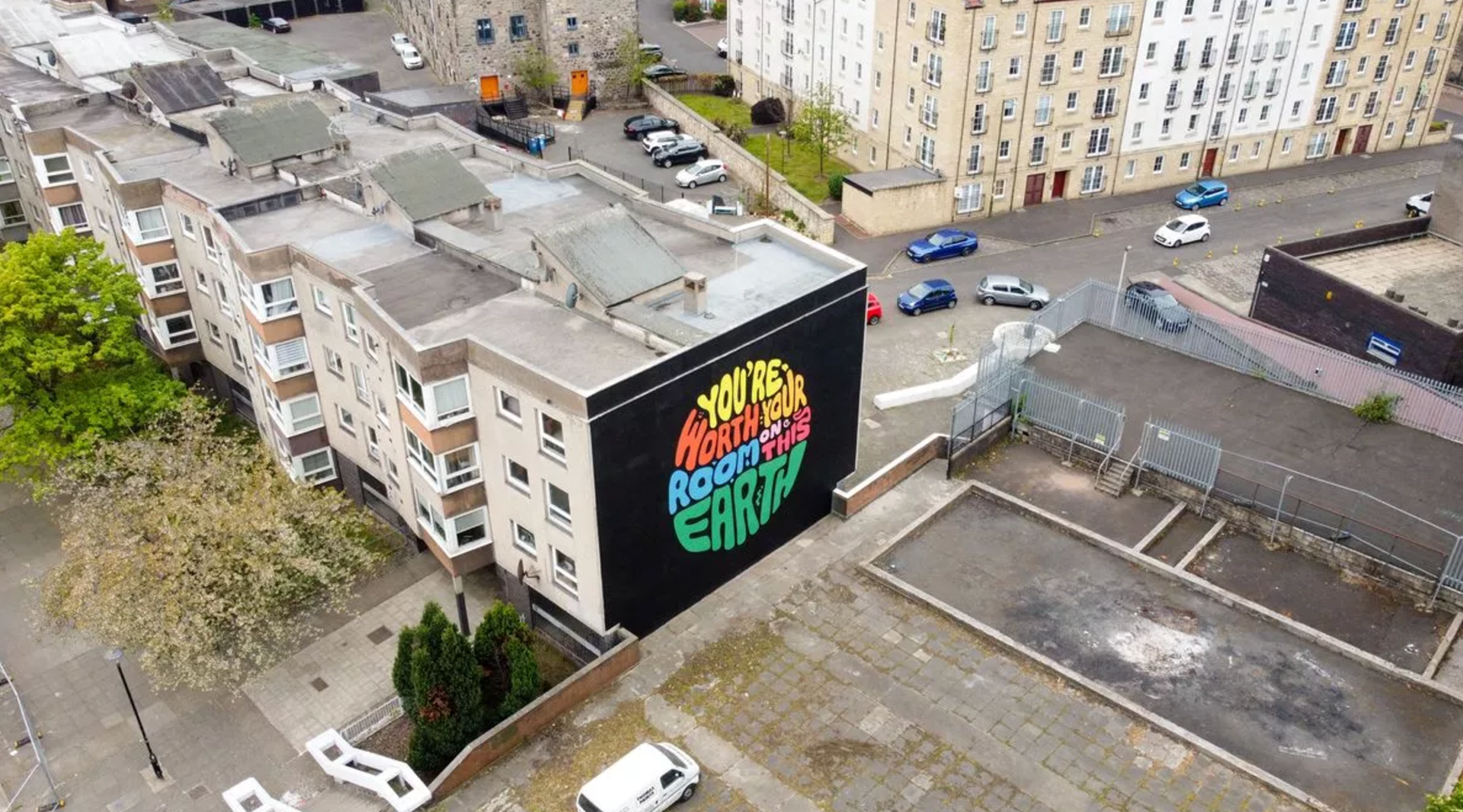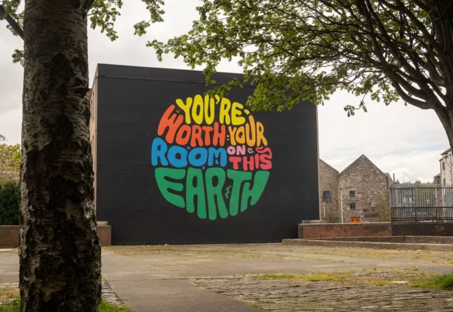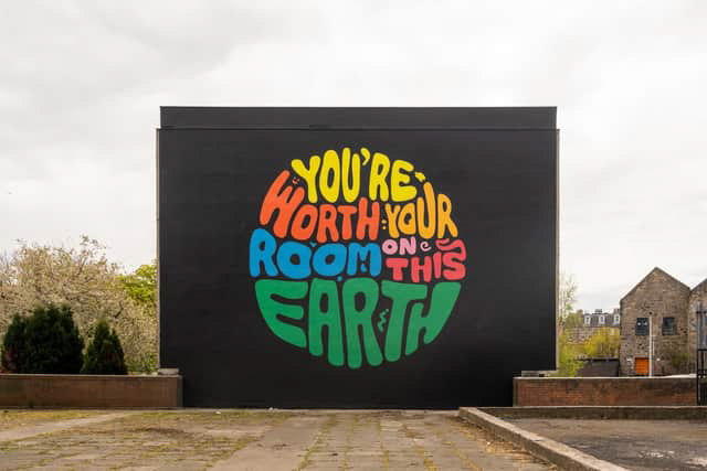 Designed a mural for Edinburgh. It was a donation from my employer, Studio Something to the area of Leith. It stands as a positive message to the community and as a reminder to everyone that 'you're worth your room on this earth'. The words are adapted from the lyrics to The Proclaimers song 'Sunshine on Leith'.