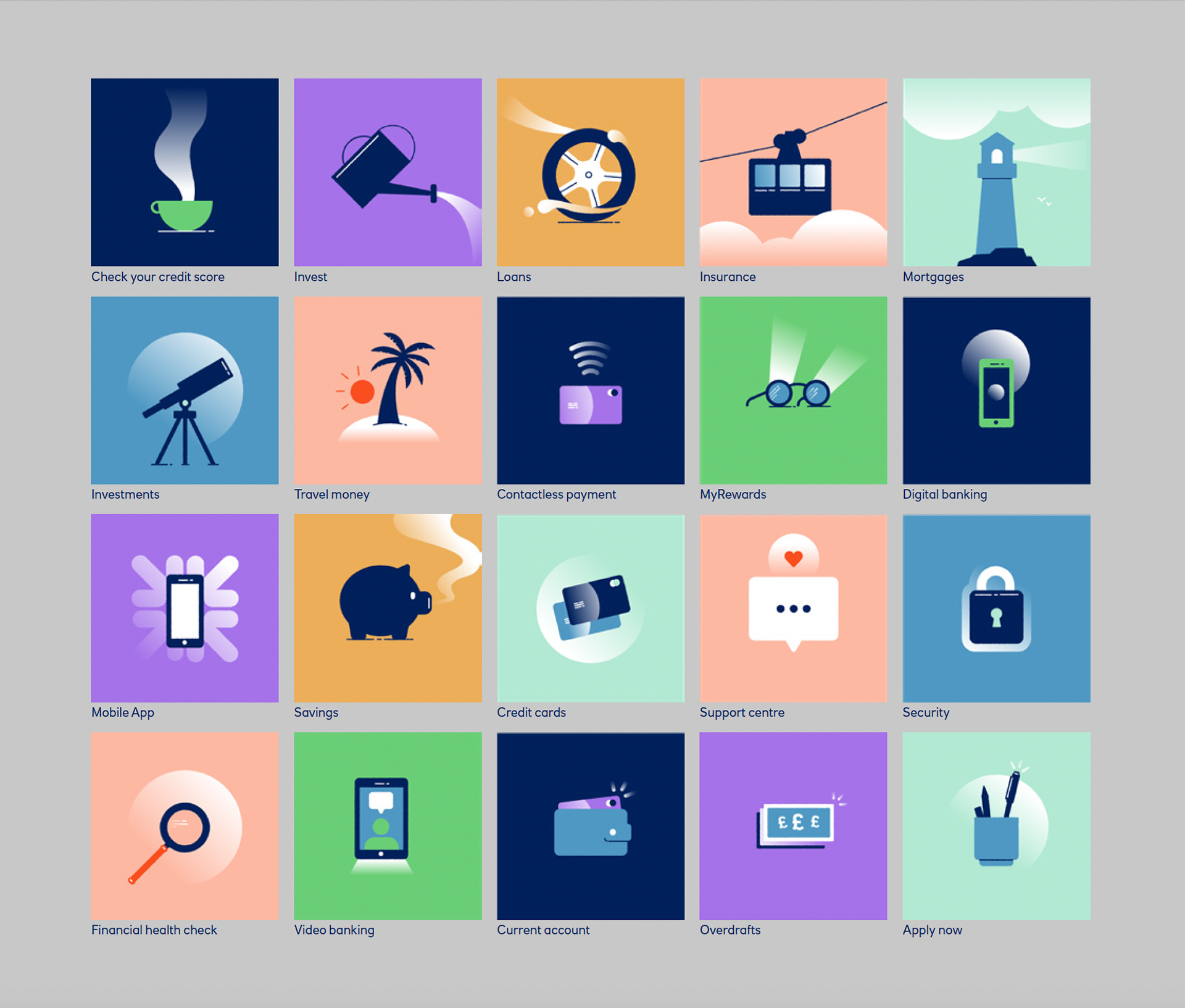 Design Director on this big project for the Royal Bank of Scotland. We were tasked with bringing the brand to a younger audience without alienating their existing customers. I created a new colour palette, illustrations and brand guidelines to help RBS appeal to their desired wider demographic.